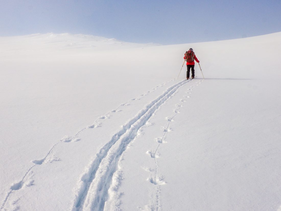 These trips are essentially backpacking trips – all gear needs to be carried and all eventualities covered. You need gear that will work in extreme conditions and also on warm windless days and you need to carry all the essentials that can keep you alive if it all goes wrong – shovels, stove, sleeping bag etc. Sadly you have to carry it all too which means pairing it down to achieve a rucksack weight that will inevitably become the object of foul curses but won’t actually stop you from moving forward for 7 or 8 hours a day.
