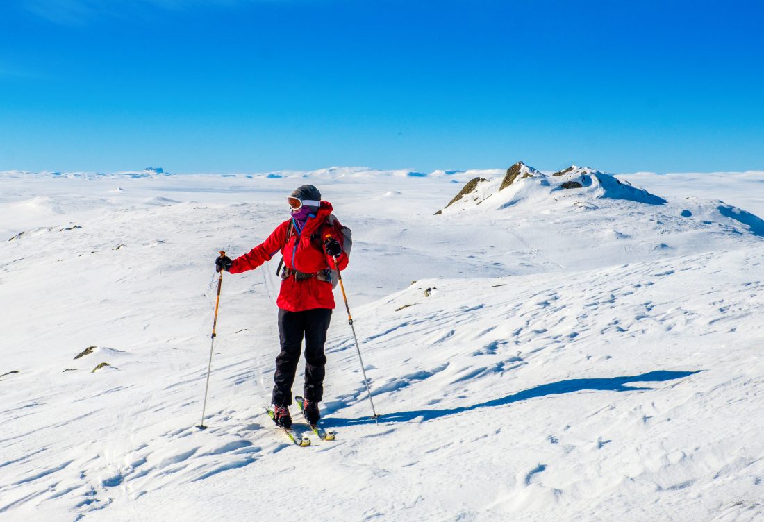 In winter the mountains of Norway can be as harsh as those of much higher ranges. For the first week of our ski tour this year we had temperatures between -20 and -30 with a stiff northerly wind on top that stripped away any warmth that the sun may have offered and bit into any exposed skin. We were skiing north – into that wind – from Rjukan across the Hardanger plateau, through Skarvheim and into the Jotunheim, a route that would take 26 days.